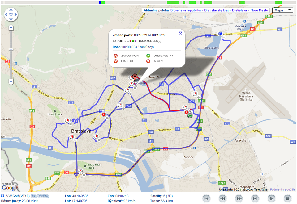 • nepretržitý monitoring pohybu vozidiel v celej EU cez webový prehliadač, alebo v mobilnom telefóne