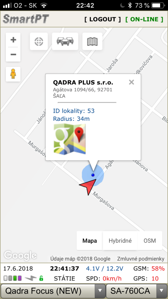 Systém ponúka online sledovanie vozidiel na niekoľkých druhoch mapových podkladov hlavne licencované Google Maps a voľné Openstreet Maps – na PC, v mobilných telefónoch a tabletoch Apple aj Android. Samozrejmosťou je kvalitne spracovaná kniha jázd vo formátoch XLS, alebo PDF. Vysoká presnosť počítadla kilometrov je známou výhodou našich zariadení. Vo verziách s napojením na CANBUS, prebieha synchronizácia počítadla kilometrov s palubným počítačom v reálnom čase. Spoľahlivý a preverený systém s rýchlou návratnosťou!