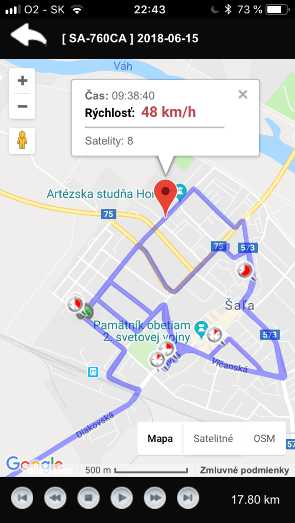 • stráženie max. rýchlosti a štýlu jazdy